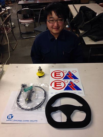 また、本日ウエストレーシングカーズ株式会社様より、ステアリング部品、ブレーキ部品、スパークシートを協賛価格でご提供していただきました。