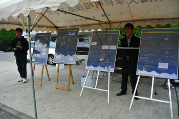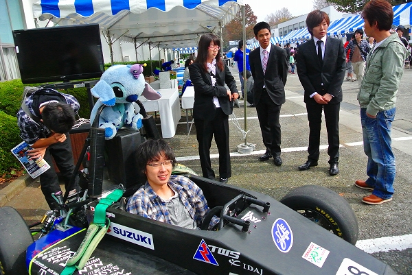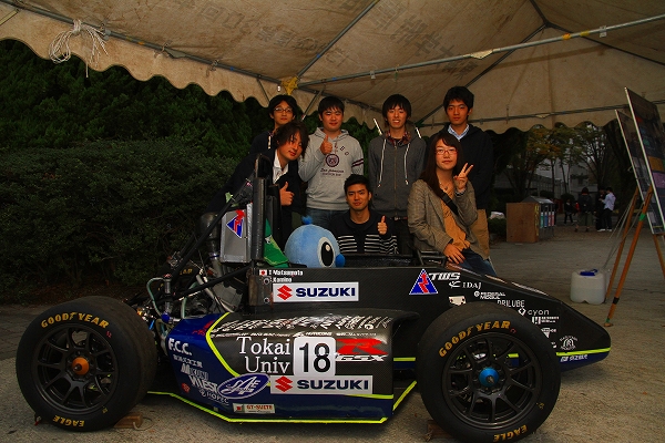 私たちTokai Formula Club(以下TFC)は、展示ブースを設け、2013年度大会参戦車両とデザインパネルの展示を行いました。