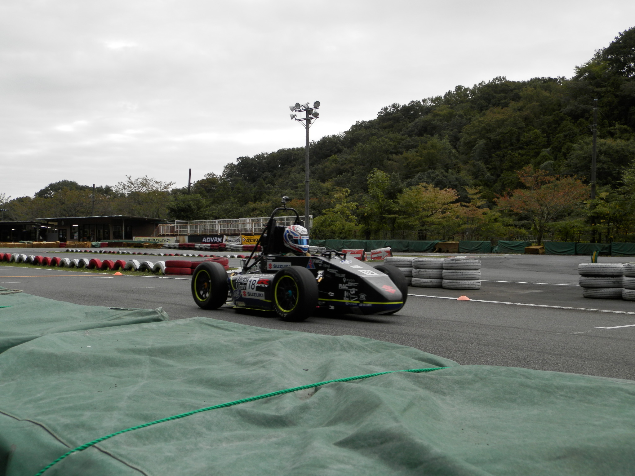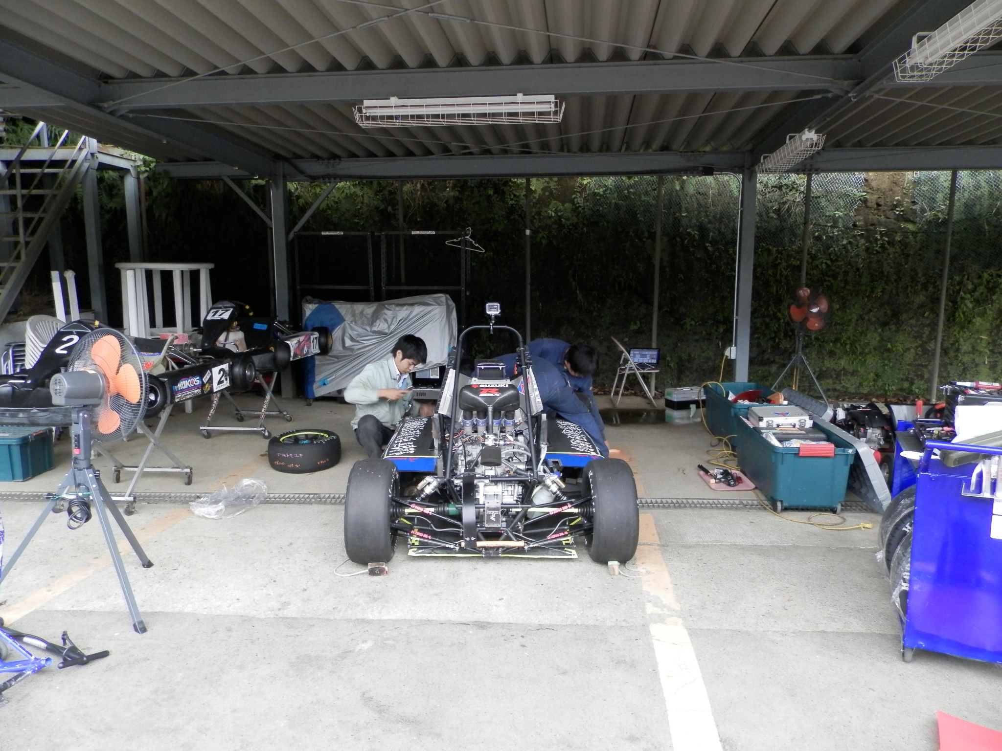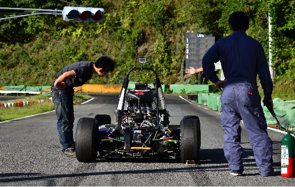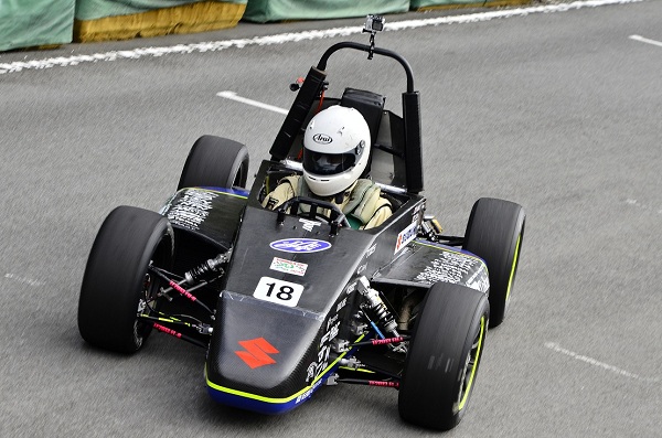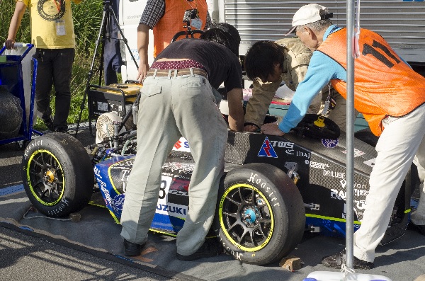 マシンの修復もなんとか間に合い、12日、13日の富士試走会には参加することができました。破損したアップライトはスペアパーツを用いて走行を行いました。