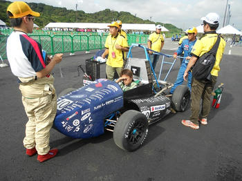 前日の技術車検を終え、本日はブレーキ試験、プレゼン審査、デザイン審査、コスト審査があります。