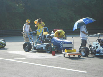 ドライバーズミーティングを終えマシンがブレーキ審査に向かいました。