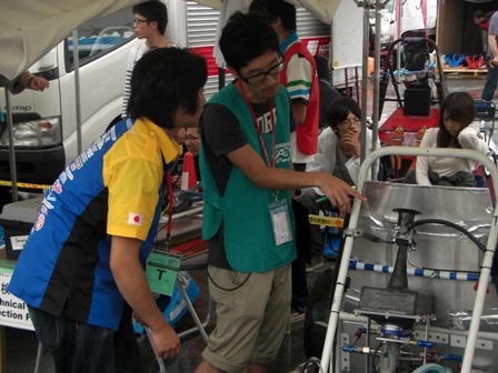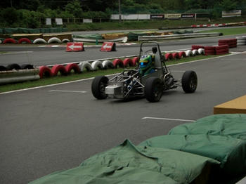 大会4日目午前中にプラクティスを行う予定でしたが、ドライブシャフトが抜けてしまうトラブルが発生してしまいました。その後、修復し簡易車検を受け、出走に間に合うことができました。そして、午後1番に出走しました。