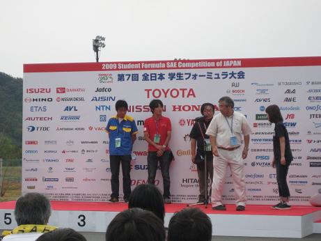 初となる全種目完走と来年の前日車検を獲得できる順位を獲得することができましたが、目標であった優勝には程遠い結果となってしまいました。この結果を後輩達へ伝え、来年へ活かしていけるように活動していきたいと思います。