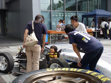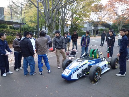 その後のマシンの展示では多くの方に来ていただきました。またオフィシャルの方からフォローアッププログラムの車検項目への協力を要請されました。私達のチームの後輩も来年に向けて勉強になるということで、車両の貸出しを行いました。本番の車検と同様にしっかりと時間をかけていただき、細かい部分まで確認することができました。各部仕上げの甘さがある部分もありましたので、非常に勉強になりました。